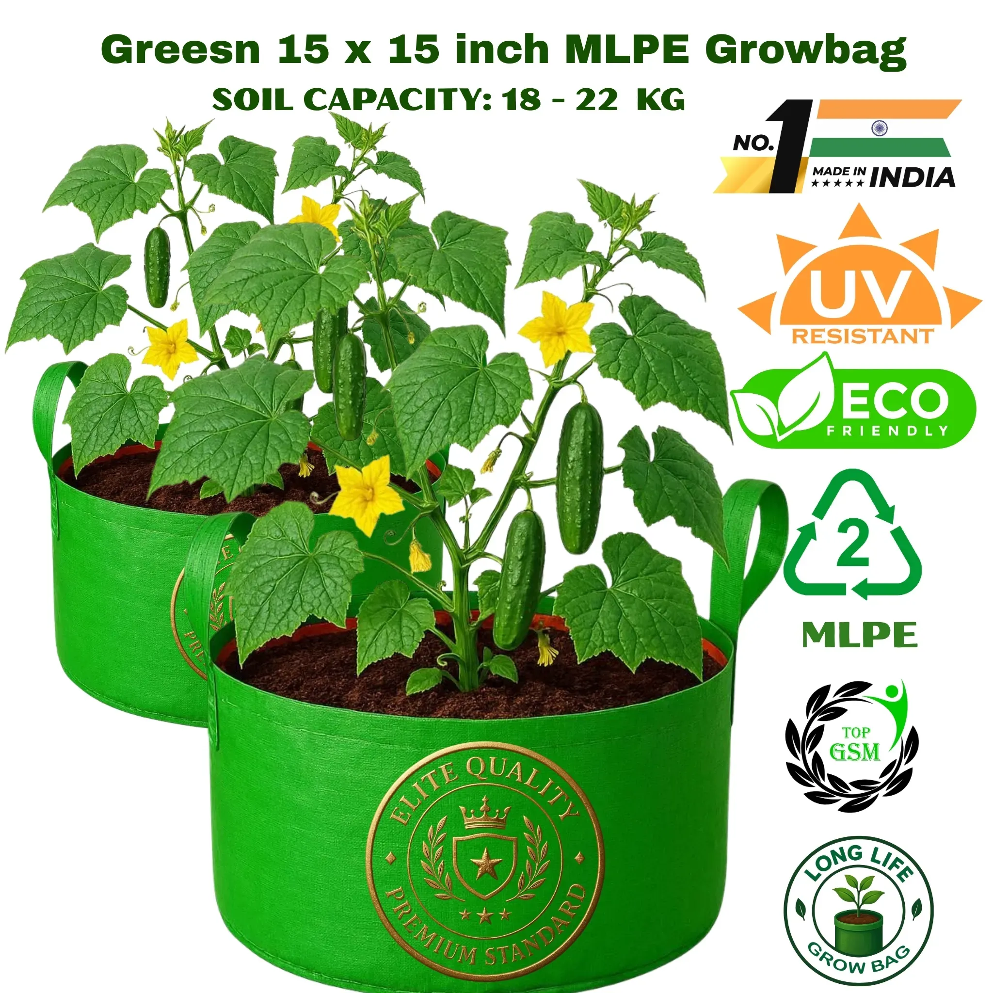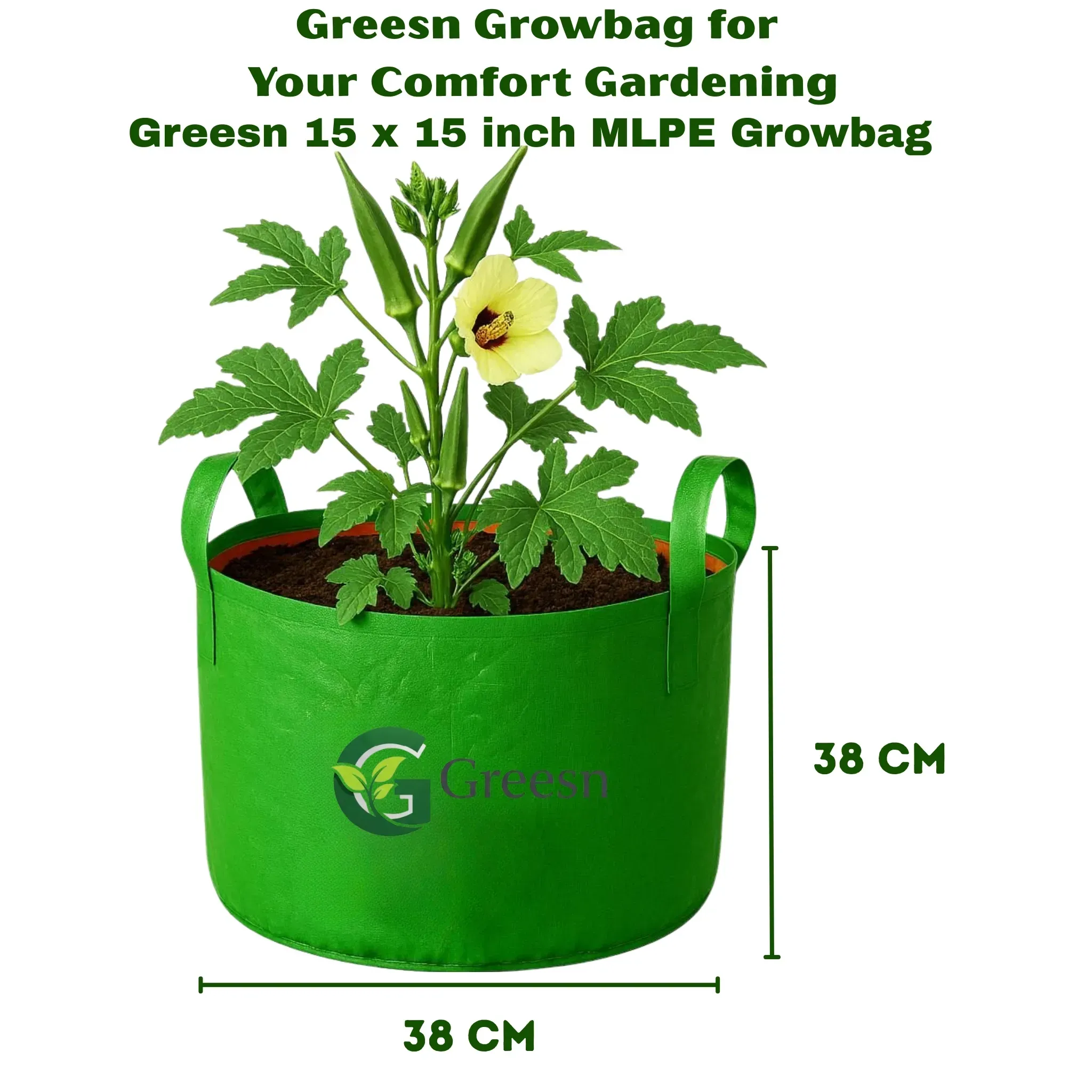 The 15×15 handle growbag is perfect for tomatoes brinjal chillies flowering plants and small fruit plants. its esoteric Structure provides constancy and supports break yields