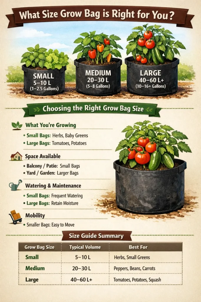 | Grow Bag Size | Typical Volume | Best For |